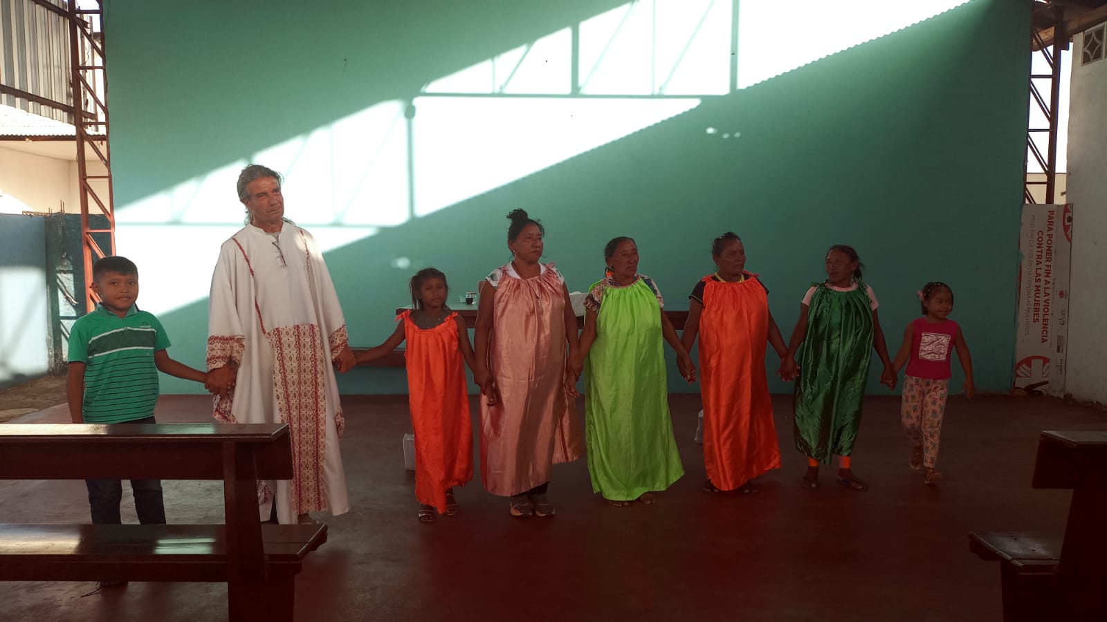 E a história ou relato incluía na “roda da gente” mais pessoas … a história deu voz a mais Warao que se aproximavam pouco a pouco. O dono do janoko, onde celebramos a Eucaristia e onde, em geral, são realizadas as demais atividades (catequese, reuniões, informações etc.) antes de morrer, pediu aos seus filhos que continuassem permitindo as atividades que os sacerdotes incentivavam e aqueles que a comunidade podia organizar no futuro. E ele confessou que estava mais atraído pelas Missas a partir de “quando começamos com as histórias-relatos Warao”.