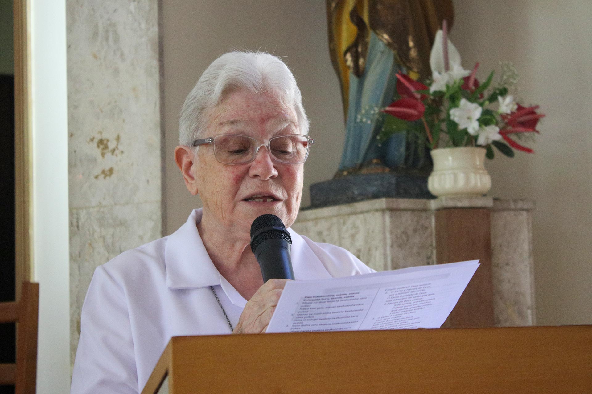Ao final da celebração, durante a ação de graças, a irmã Benildes citou o testemunho da leiga Larissa Nunes Bezerra (foto), paroquiana da Paróquia São Marcos Evangelista, que relatou ter recebido a graça da cura de um aneurisma considerado irreversível pelos médicos, após passar por mais de cinco cirurgias, por intercessão de São José Allamano.