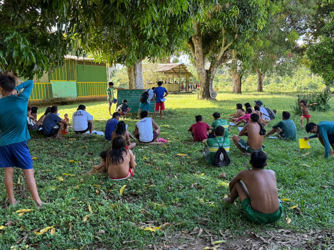 Após a merenda, organizamos os pontos discutidos, reforçando que os jovens devem se reconhecer como membros de uma mesma família cultural. No período da tarde, uma palavra de incentivo foi direcionada ao grupo, ressaltando a importância do processo formativo para o fortalecimento cultural, político e espiritual do povo Yanomami.